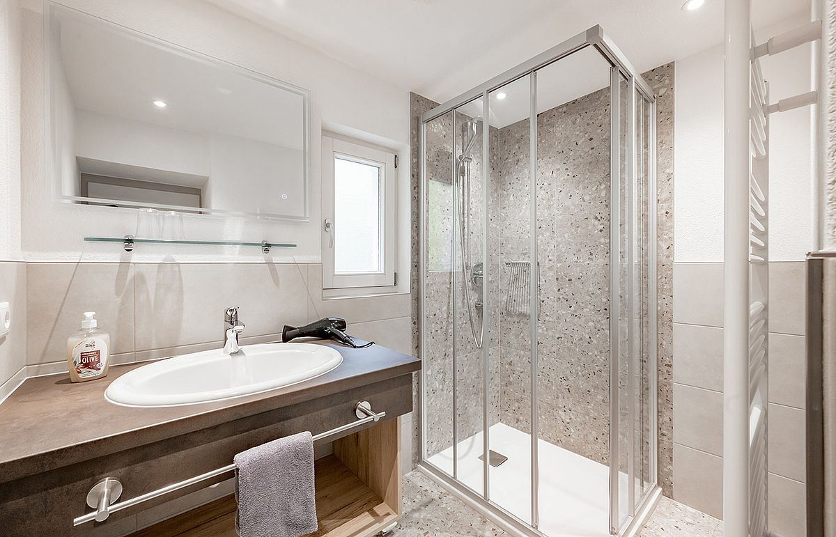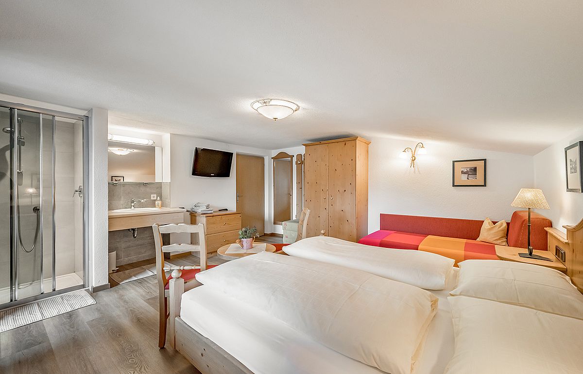 - 1 Dreibettzimmer mit Waschtisch und Dusche