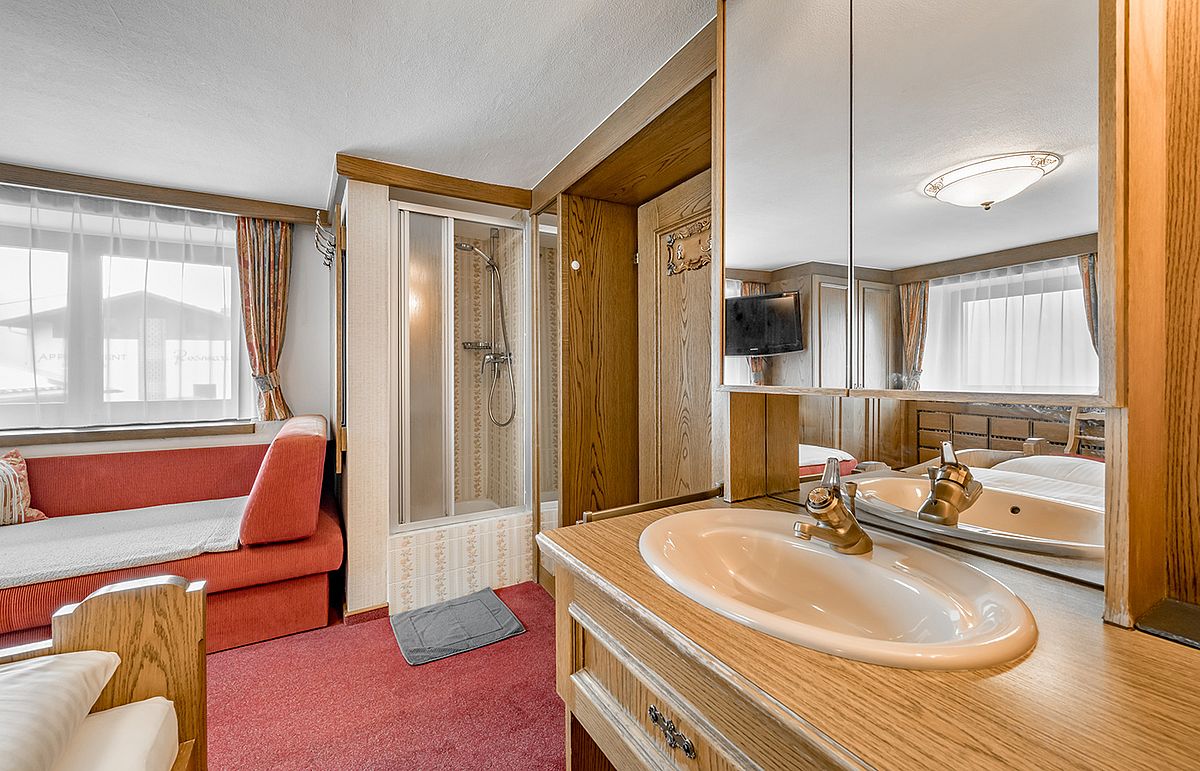 - 1 Doppelzimmer mit Badezimmer (Bad/WC), Schrankraum, Balkon