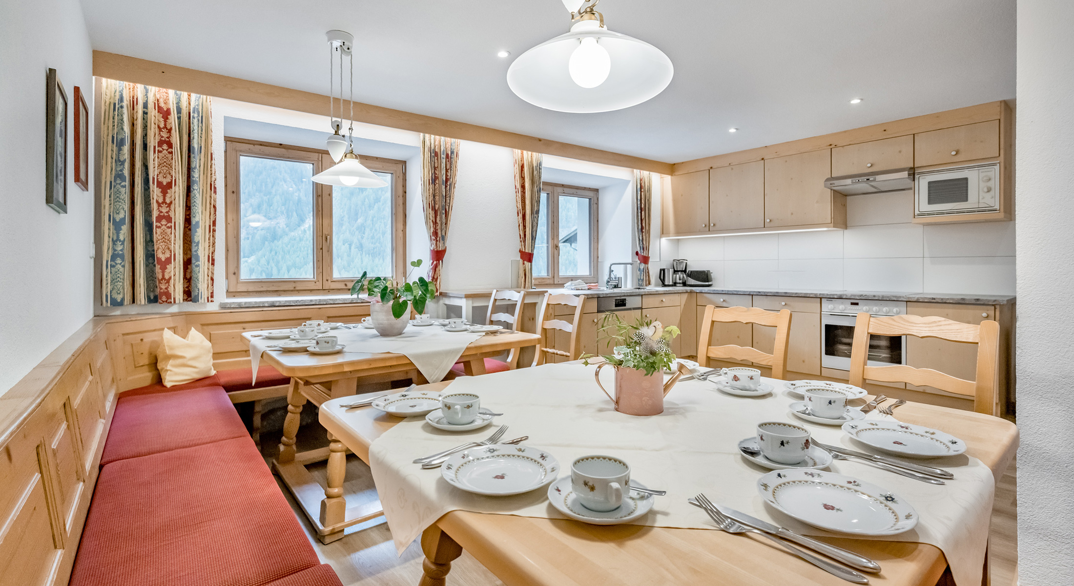 Im ersten Stock befindet sich das ca. 45 m² große Appartement für 2–4 Personen, mit eigenem Zugang, Ostbalkon und kleiner Südwest Terrasse.